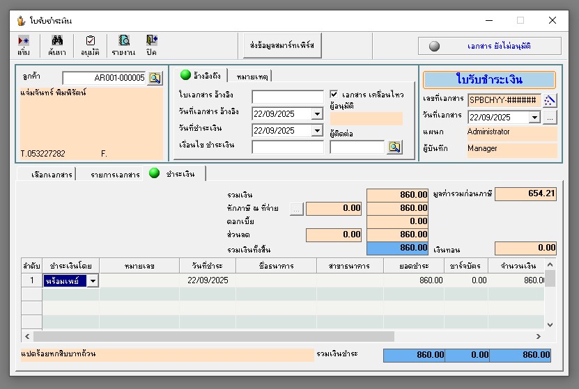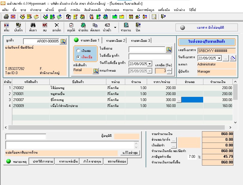 - สามารถบันทึกการขายย้อนหลังได้ เช่นกรณีขายด้วยระบบมือล่วงหน้าก่อนการใช้โปรแกรม