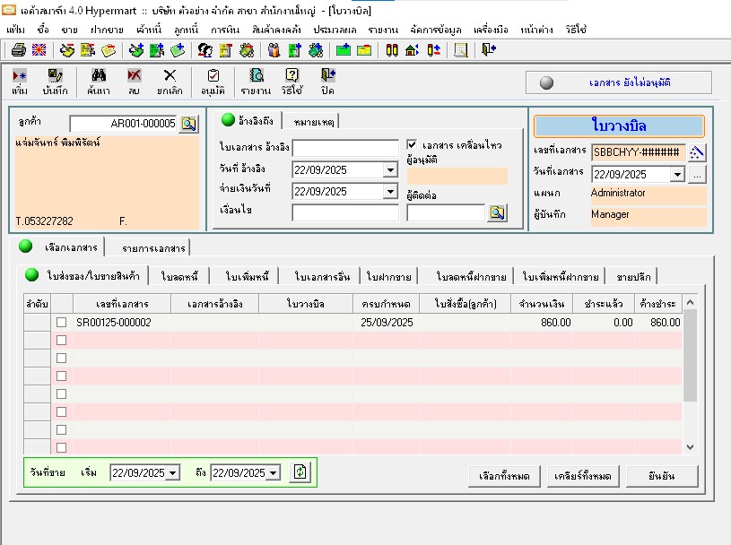 รายงาน - ยอดขายตามบิล - ตามลูกค้า